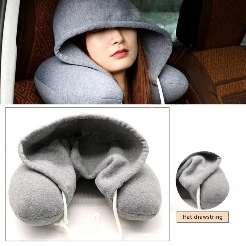 This portable U-shaped neck pillow provides comfortable support for long journeys, whether by plane, car, or train. Designed with a hood for added privacy and protection, it helps reduce strain on the neck and shoulders during travel. Lightweight and portable, it easily fits in carry-ons or backpacks. Perfect for passengers seeking comfort, rest, and relaxation, this travel pillow combines ergonomic design with convenient portability for every trip.